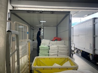 指定された箇所へクリーニング済みのリネン類を納品します。