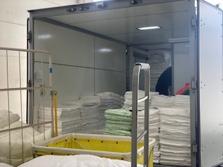 クリーニング済みのリネン類(シーツ・タオルなど)を納品。