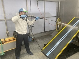 専用のアルコール除菌剤を用いて、消毒作業を行ないます。